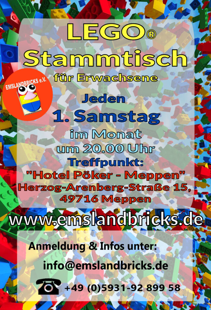 Wir veranstalten einen monatlichen offenen Stammtisch für alle LEGO® Fans aus dem Emsland und dem näheren Umkreis.